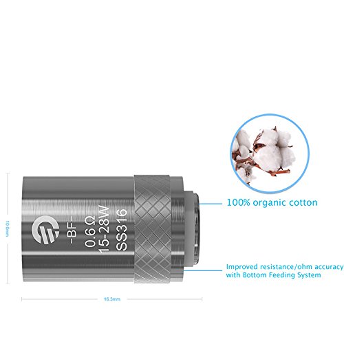 - Widerstand: BF SS316-0.5ohm (15-30W) / BF SS316-1.0ohm (10-25W) / BF Clapton-1.5ohm (8-20W) / BF SS316-0.6ohm (15 -28W)