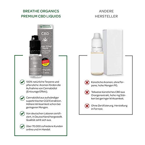 Premium CBD Liquid Super Silver Haze von Breathe Organics® | E Liquid ohne Nikotin mit 100 mg CBD | 100% natürliche Terpene | Cannabidiol Liquid